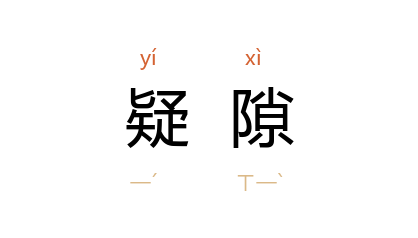 引南朝 宋 刘义庆 《世说新语·赏誉》:“王恭 始与 王建武 甚有情,后遇 袁悦 之间,遂致疑隟。”《晋书·荀晞传》:“初, 越 疑 晞 与帝有谋,使游骑於 成皋 间,获 晞 使,果得詔令及朝廷书,遂大构疑隙。”《宋史·彭龟年传》:“自古人君处骨肉之间,多不与外臣谋,而与小人谋之,所以交鬭日深,疑隙日大。”