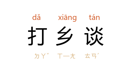 引《通俗常言疏证·言语·打乡谈》引《鸣凤记剧》:「你方才说什么嬉子麻,可是你在那里打乡谈骂我。」