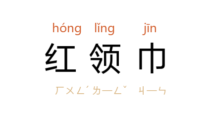 ⒈ 少年先锋队员的标志。红领巾代表红旗的一角,意在教育少先队员继承革命传统。