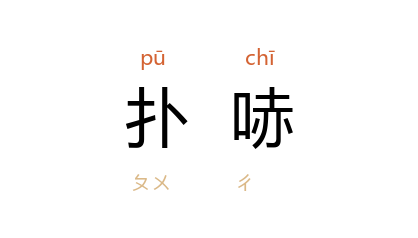 ⒈ 亦作“扑吃”。亦作“扑嗤”。亦作“扑蚩”。象声词。多形容笑声。