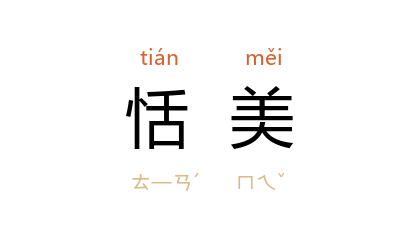 引叶圣陶 《倪焕之》十五:“每个角落里,每扇窗子边,都印上艺术的灵思的标记,流荡着和悦恬美的空气。”郑振铎 《插图本中国文学史》第十章一:“不仅五言,连四言诗也都照射出夕阳似的血红的恬美的光亮出来。”