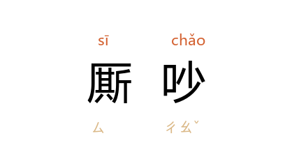 引《永乐大典戏文三种·张协状元·第二〇出》:「解元,你两人厮吵则甚?」《红楼梦·第六〇回》:「宝玉正在听见赵姨娘厮吵,心中自是不悦。」
