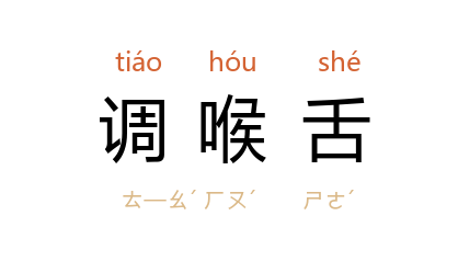 引元 秦简夫 《赵礼让肥》第二折:“噤声,我跟前调喉舌。”明 无名氏 《破风诗》第三折:“这廝无礼也,向我跟前调喉舌。”亦省作“调喉”。 元 尚仲贤 《气英布》第四折:“你又来调喉了。”《初刻拍案惊奇》卷三二:“狄氏 笑道:‘又来调喉,那里得有个鬼?’”