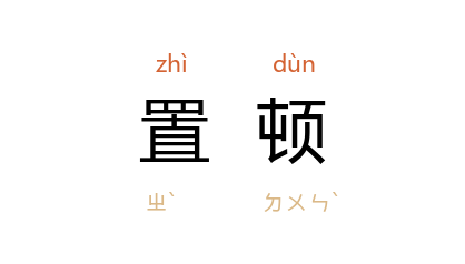 引《陈书·鲁悉达传》:“悉达 分给粮廪,其所济活者甚众,仍於 新蔡 置顿以居之。”《隋书·炀帝纪下》:“每之一所,輙数道置顿,四海珍羞殊味,水陆必备焉。”《宋史·礼志七》:“令三司沿 汴、蔡、御河 入 广济河 运仪仗什物赴 兖州,发上供木,由 黄河 浮筏至 鄆州,给置顿费用。”