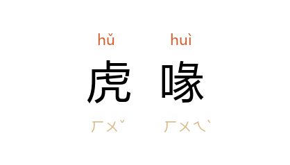 引《汉书·匈奴传下》:“是以忍百万之师以摧饿虎之喙,运府库之财填 卢山 之壑而不悔也。”唐 柳宗元 《行路难》诗:“蟠龙吐耀虎喙张,熊蹲豹躑争低昂。”唐 房千里 《杨娼传》:“今幸吾之未死也,必使脱其虎喙。不然,且无及矣。”
