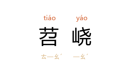 引三国 魏 曹植 《九愁赋》:“践蹊径之危阻,登苕嶢之高岑。”《文选·张协<七命>》:“摇刖峻挺,茗邈苕嶢。”吕延济 注:“茗邈苕嶢,远高貌。”晋 潘岳 《河阳县作》诗:“洪流何浩荡,脩芒鬱苕嶢。”