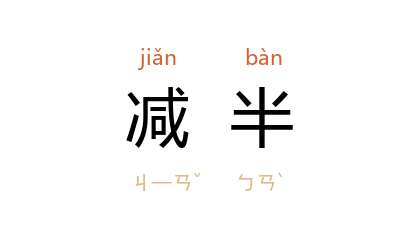 引晋 潘岳 《西征赋》:“忍生民之减半,勒东岳以虚美。”《晋书·邓粲传》:“尚公 等无以难之,然 粲 亦於此名誉减半矣。”《南史·何点传》:“兄 求 亦隐 吴郡 武丘山。求 卒, 点 菜食不饮酒,讫于三年,衣带减半。”《宋史·河渠志一》:“併为一则劳费自倍,分二流则劳费减半。”