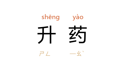 ⒈ 中药名。由汞和雄黄、火硝等炼制而成。有黄、红两种,称黄升(黄升丹)、红升(红升丹)。为外用要药,主治痈疽、疔疮等症,能搜脓、拔毒、去腐、生肌。