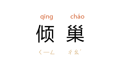 ⒈ 倾覆巢穴;覆巢;全部出动。