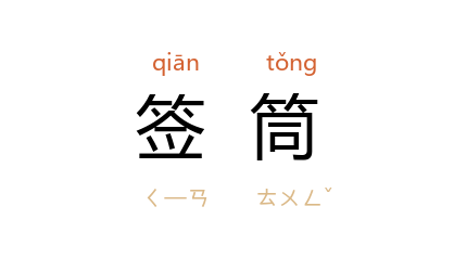 ⒈ 寺庙中装盛签诗牌的竹筒。