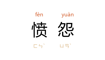 引《汉书·叙传下》:“项氏 畔换,黜我 巴 汉,西土宅心,战士愤怨。”《三国志·魏志·陈思王植传》:“植 常自愤怨,抱利器而无所施。”宋 范仲淹 《推委臣下论》:“李义府 以立后之功,独见委用,陷害忠良,天下愤怨。”《古今小说·陈御史巧勘金钗钿》:“夫人道:‘我母子并无异心。只为公子来迟,不将姻事为重,所以小女心中愤怨,公子休得多疑。’”