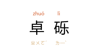 引汉 王充 《论衡·命义》:“卓砾时见,往往皆然。”《后汉书·文苑传·祢衡》:“淑质贞亮,英才卓砾。”三国 魏 阮瑀 《筝赋》:“不疾不徐,迟速合度,君子之行也。慷慨磊落,卓砾盘紆,壮士之节也。”