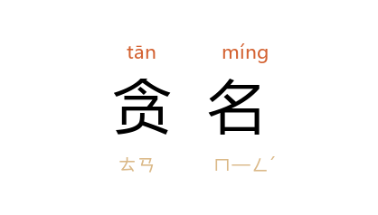 引《晏子春秋·杂上十八》:“臣闻大国贪于名,小国贪于实,此诸侯之公患也。”《史记·商君列传》:“非其位而居之曰贪位,非其名而有之曰贪名。”明 高明 《琵琶记·孝妇题真》:“当初只道 蔡伯喈 贪名逐利,不肯回家,原来被人逗留在此。”