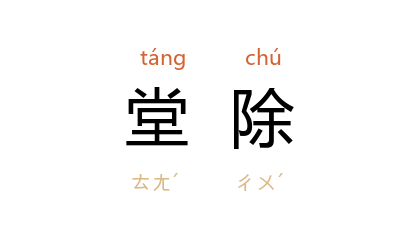 ⒈ 堂下的台阶。宋制,京官、选人一般由吏部选差,其有特殊勋劳者,得由政事堂直接奏注差遣,称“堂除”。