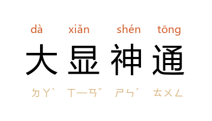 引《西游记》第八九回:“他三人辞了师父,在城外大显神通。”