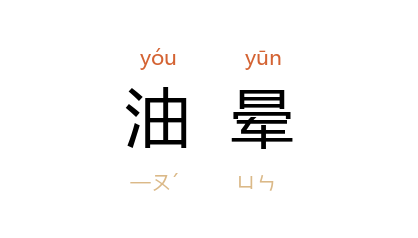 ⒈ 磨墨时,墨汁在墨锭周围形成的光亮的墨晕,谓之“油晕”。