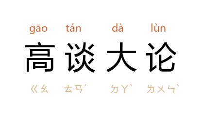 ⒈ 悬得甚高、不切实际的言论。宋·朱熹〈答赵子钦〉:「人欲横流不自知觉,而高谈大论以为天理尽在是也。」也作「高谈弘论」。