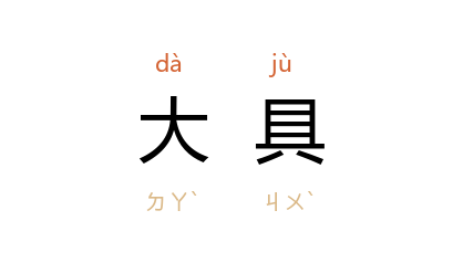 引《荀子·正论》:“天下者,大具也,不可以小人有也,不可以小道得也,不可以小力持也。”《三国志·魏志·武帝纪》“秋七月公征 孙权” 裴松之 注引 晋 司马彪 《九州春秋》:“参军 傅干 諫曰:‘治天下之大具有二,文与武也。’”