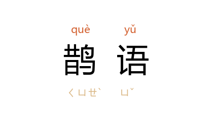 引唐 窦巩 《早春松江野望》诗:“耕地人来早,营巢鹊语频。”金 元好问 《得纬文兄书》诗:“鹊语喜復喜,山城谁与娱。”清 李慈铭 《苏幕遮·题家书后》词:“卜金钱,裁尺素,鹊语灯花,总是无凭据。”