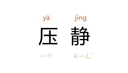 引《镜花缘》第八三回:“列位压静,听在下且把此书的两句题纲念来。”《儿女英雄传》第一回:“列公压静,听説书的慢慢道来。”