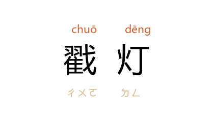 引《红楼梦》第十四回:“两边一色戳灯,照如白昼。”《中国歌谣资料·北京儿歌·娶媳妇儿的》:“娶媳妇儿的,门口儿过,宫灯、戳灯十二个,旗锣伞扇站两旁。”