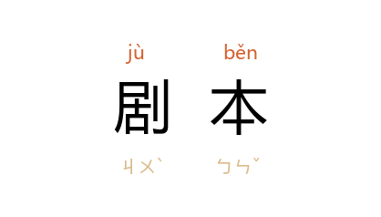 ⒈ 一种文学作品的体裁。是戏剧艺术创作的基础。主要由人物的对白、唱词和舞台指示构成。经过导演处理,用于演出的剧本,称为「脚本」或「演出本」;不适合演出、专供阅读的剧本,称为「案头剧」或「书斋剧」。
