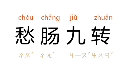 愁肠九转[ chóu cháng jiǔ zhuǎn ]