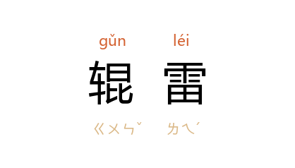 引宋 苏轼 《虞美人·琵琶》词:“试教弹作辊雷声,应有 开元 遗老泪纵横。”清 沉廉 《锦江观涨》诗:“桃花落尽春水生, 锦江 忽作辊雷鸣。”清 赵翼 《述庵司寇新刻大集见贻》诗:“炎乡三冬辊雷吼,阴岭六月阵雪饕。”