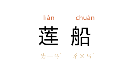 引清 沉起凤 《谐铎·营卒守义》:“庄太史 家有婢……面黑而麻,裙底莲船约尺二。”清 旷望生 《小脚文》:“夫闺媛娇纵性成,或以慈母爱怜,反致莲船之盈尺。”