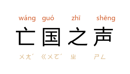 引《韩非子·十过》:“此亡国之声不可遂也……此 师延 之所作,与 紂 为靡靡之乐也。及 武王 伐 紂,师延 东走,至於 濮水 而自投,故闻此声者必於 濮水 之上。先闻此声者,其国必削,不可遂。”《孔子家语·辨乐解》:“今也匹夫之徒,曾无意於先王之制,而习亡国之声,岂能保其六七尺之体哉。”