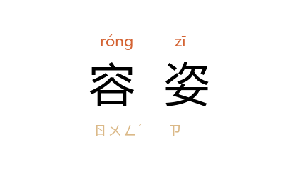 引《后汉书·虞延传》:“永平 初,有 新野 功曹 邓衍,以外戚小侯每豫朝政,而容姿趋步,有出於众。”晋 陆机 《拟<青青河畔草>》诗:“粲粲妖容姿,灼灼美颜色。”南朝 梁简文帝 《妾薄命篇十韵》:“名都多丽质,本自恃容姿。”明 陈子龙 《吴阊口号》之六:“借得 夏侯 衣四障,教人不敢问容姿。”