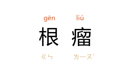 ⒈ 生长于豆科植物根部的球状小瘤。由根瘤菌的丝状体进入寄生植物根的内部,引起寄生根细胞异常分裂,而形成根瘤。