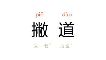 引元 王嘉甫 《八声甘州》套曲:“窄弓弓撇道,溜刀刀渌老,称霞腮一点朱樱小。”明 朱有燉 《仗义疏财》第三折:“我从来不惯喫裙带上衣食,你看我撇道儿勾一尺。”