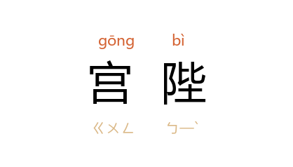 引《后汉书·董卓传》:“﹝ 吕布 ﹞驰齎赦书,以令宫陛内外。士卒皆称万岁,百姓歌舞於道。”南朝 宋 颜延之 《北使洛》诗:“宫陛多巢穴,城闕生云烟。”《南齐书·褚渊传赞》:“称述霸王,纲维典礼。期寄两朝,绸繆宫陛。”