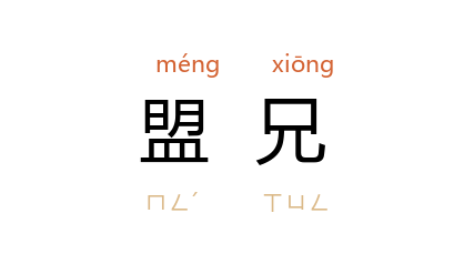 引《二十年目睹之怪现状》第九十回:“﹝ 赵啸存 ﹞席中与 伯芬 十分投契,便商量要换帖…… 啸存 年长,做了盟兄, 伯芬 年少,做了盟弟。”徐铸成 《杜月笙正传》十一:“每次到 上海,戴 必和这位盟兄亲密聚首。”