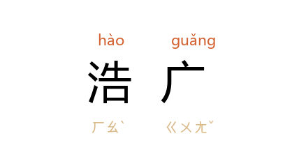 引汉 王充 《论衡·须颂》:“汉 德明著,莫立邦表之言,故浩广之德未光於世也。”清 陈宗之 《汉道》诗:“乾坤虽浩广,无隙置薄躬。”