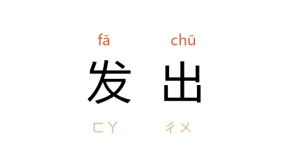 例如:「发出声音」、「发出函件」、「发出款项」。