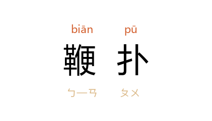 ⒈ 见“鞭扑”。亦作“鞭朴”。亦作“鞭扑”。用作刑具的鞭子和棍棒。亦指用鞭子或棍棒抽打。