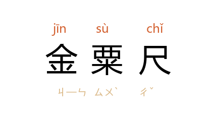 引唐 杜甫 《白丝行》:“繰丝须长不须白, 越 罗 蜀 锦金粟尺。”仇兆鳌 注:“尺以金粟饰之,富贵家之物。”金 元好问 《赠答张教授仲文》诗:“倒凤颠鸞金粟尺,裁断琼綃三万匹。”