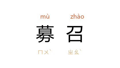 引《三国志·蜀志·先主传》“后为 高唐 尉,迁为令” 裴松之 注引 汉 王粲 《英雄记》:“灵帝 末年, 备 尝在京师,后与 曹公 俱还 沛国,募召合众。”《三国志·吴志·孙坚传》:“坚 以郡司马募召精勇,得千餘人,与州郡合讨破之。”
