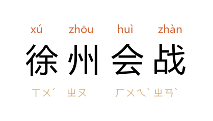 ⒈ 抗日战争时期的一次战役。1938年1月下旬,日军为打通津浦铁路,调集二十四万人,分南北两路夹击徐州。中国第五战区司令长官李宗仁率军约六十万防守徐州。南线日军第十三师团陷蚌埠后,被阻于淮河。北线日军在台儿庄遭中国守军顽强抗击,被歼万余人。日军改变战法,以少数兵力牵制正面守军,集中八个师团向西迂回包围徐州。守军遂向皖豫边界突围。5月19日,徐州陷落。