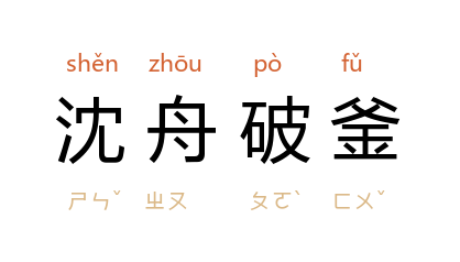 ⒈ 参见“破釜沉舟”。参见“破釜沉舟”。
