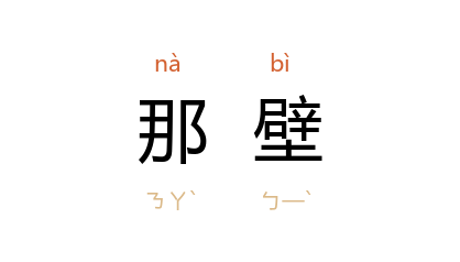 引元 石子章 《竹坞听琴》楔子:“后来他那壁生了个孩儿,唤做 秦脩然。”元 李行道 《灰阑记》第一折:“小人不认的那壁姐姐。”《水浒传》第二八回:“却纔茶罢,只见送饭的那个人来请道:‘这里不好安歇,请都头去那壁房里安歇。’”
