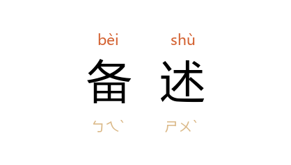 引十娘 备述来因。”清 赵翼 《瓯北诗话·韩昌黎诗》:“《示儿诗》自言辛勤三十年,始有此屋,而备述屋宇之塏爽,受誥封,所往还无非公卿大夫,以诱其勤学。”《花月痕》第三回:“这晚 采秋 回家,听那丫鬟备述 荷生 问答,便认定 吕仙阁 所遇见的定是 韩荷生。”