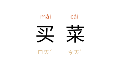 ⒈ 至市场购买鱼、肉、蔬菜、水果等物品。