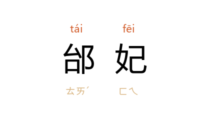 ⒈ 有邰氏之女妾嫄,为帝喾之世妃,因称邰妃。古代传说姜嫄曾禋祀以求子,见上帝之足迹而履其拇,孕而生后稷。