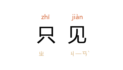 例如:「只见他慌慌张张的跑出去,什么话也没说。」