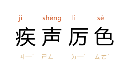 引明 马愈 《马氏日抄·胡宗伯》:“虽盛怒,未尝疾声厉色。”鲁迅 《书信集·致王志之》:“倘若疾声厉色,拒人于千里之外,倒是我们的损失。”沈从文 《绅士的太太》:“﹝绅士﹞在议会时还极其雄强,常常疾声厉色的和政敌论辩,一言不合就击起一个墨盒飞到主席台上去。”