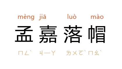 ⒈ 《晋书·孟嘉传》:“:九月九日,温(桓温)燕龙山,僚佐毕集。时佐吏并着戎服。有风至,吹嘉帽堕落,嘉不之觉。温使左右勿言,欲观其举止。嘉良久如厕,温令取还之,命孙盛作文嘲嘉,着嘉坐处。嘉还见,即答之,其文甚美,四坐嗟叹。”后以“孟嘉落帽”形容才子名士的风雅洒脱、才思敏捷。