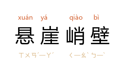 ⒈ 高峻的山崖,陡峭的石壁。形容山势高直险峻。宋·张君房也作「悬崖绝壁」。